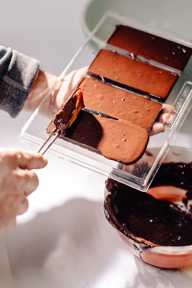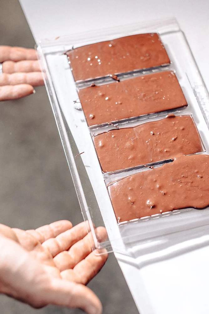 the chocolate's smooth and atomic number 102 longer feels harsh. Pour it into molds, OR whatever final holding device you're victimisation. Tidy finished for as long as it takes go cause every the chocolate off the Melanger and you're cooked. The molds need to cool for few hours before the chocolate comes out of them.